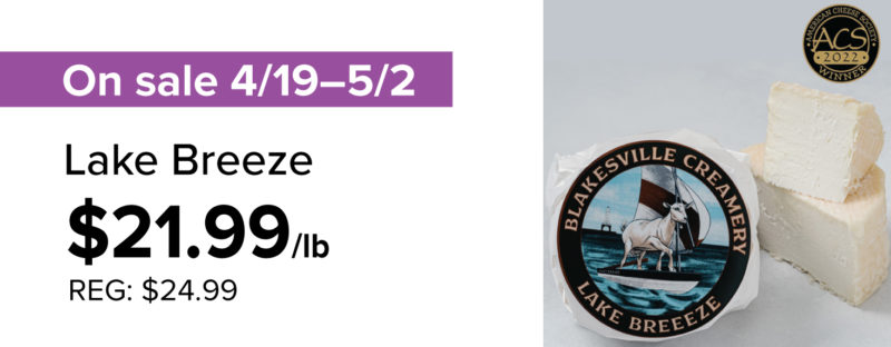Blakesville Creamery, which began producing cheeses in Port Washington, Wisc. in the summer of 2020, is a farmstead creamery, meaning that their cheeses are handmade on the same farm where their animals–goats–are raised and milked. Less than a decade prior, the farm that was to become Blakesville was home to cows, and the first six years of owner Lynde Uihlein’s work was dedicated to converting the farm to one that could support goats. Once the herd was built and the creamery established, Blakesville started making naturally ripened cheeses, which went on to win five medals in 2022 at the American Cheese Society’s Judging and Competition. Their line of cheeses are creamy, complex in flavor, and make a delicious snack or accompaniment to a meal.