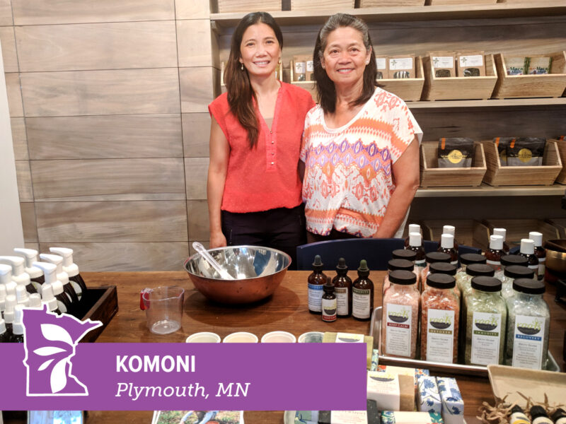Komoni (formerly known as Roots Essential) is a local, woman-owned wellness business that sells naturally-derived bath soaks, soaps, lotions, and more. Founder Evangeline Stacy grew Komoni from her experience as a sports massage therapist as well as her upbringing in the Philippines, where she developed passions for service and nature. A Community Foods vendor, Komoni is committed to sustainability in their products and packaging. Read more about Komoni here.