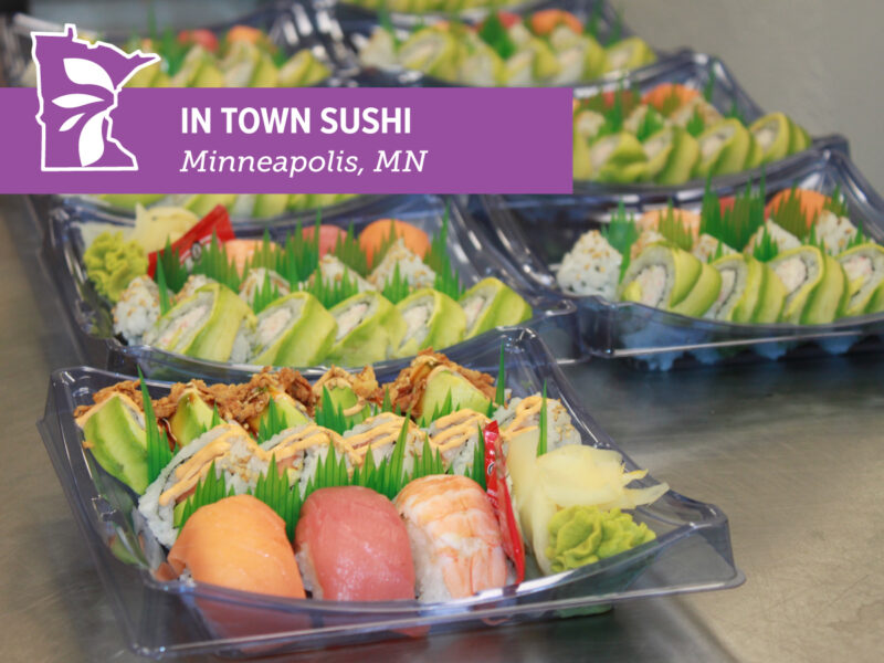 Intown Sushi is a local restaurant and sushi supplier founded by Than Zaw in 2017. After building on years of experience as a sushi chef, Zaw opened his own business that provides fresh, high-quality sushi to over 30 retail locations around the Twin Cities. Intown Sushi sells rolls, bowls, nigiri, and more in the Grab and Go Deli sections of the Franklin and Friendship stores.