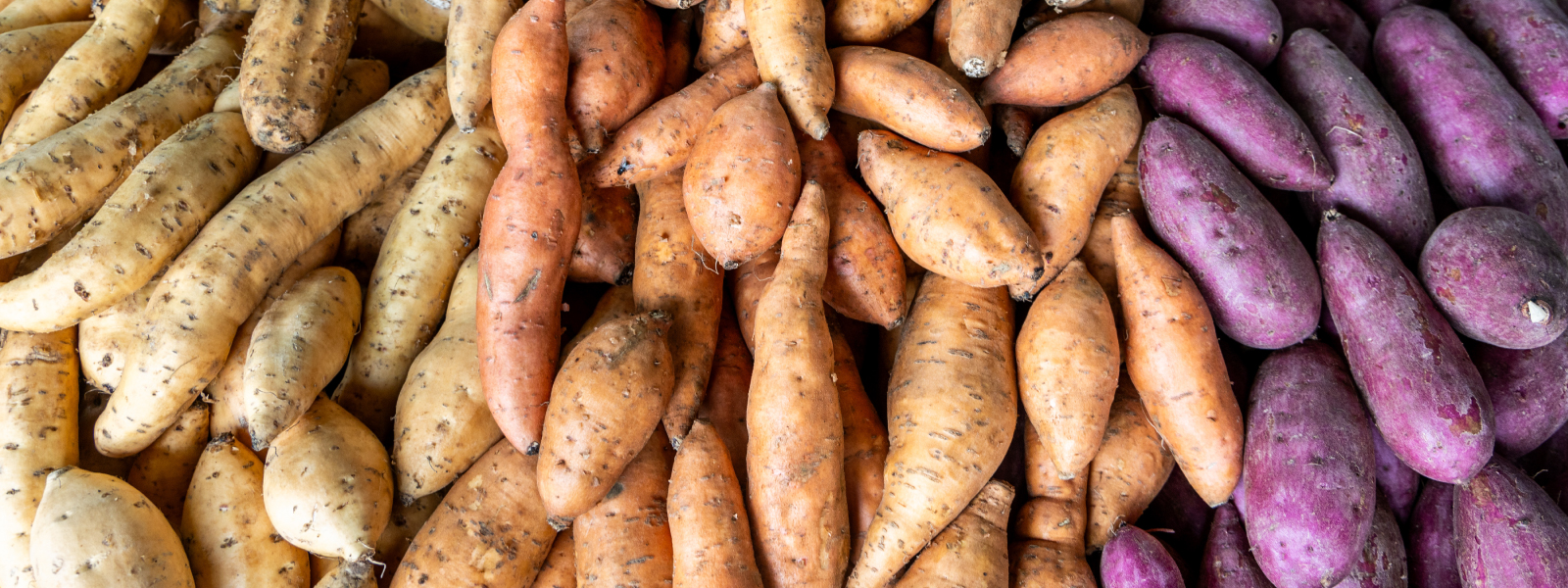 Get ready for fall flavors on Seward Co-op shelves! Few things are cozier than mashed potatoes, gravy, and hot baked apple pies. Humble white or yellow potatoes often steal the spotlight, but warm, autumnal flavors sometimes have us reaching for their cousin, the sweet potato, or their other cousin, yams. Confused about your tubers? Let us help you out with an introduction, along with a few ideas on how to use them.