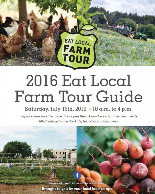 Look for copies of the Eat Local Farm Tour guide book in the co-op, or download a PDF version. In it, find suggested tours for visiting several farms within specific regions. More information can also be found on the Eat Local Farm Tour Facebook page.