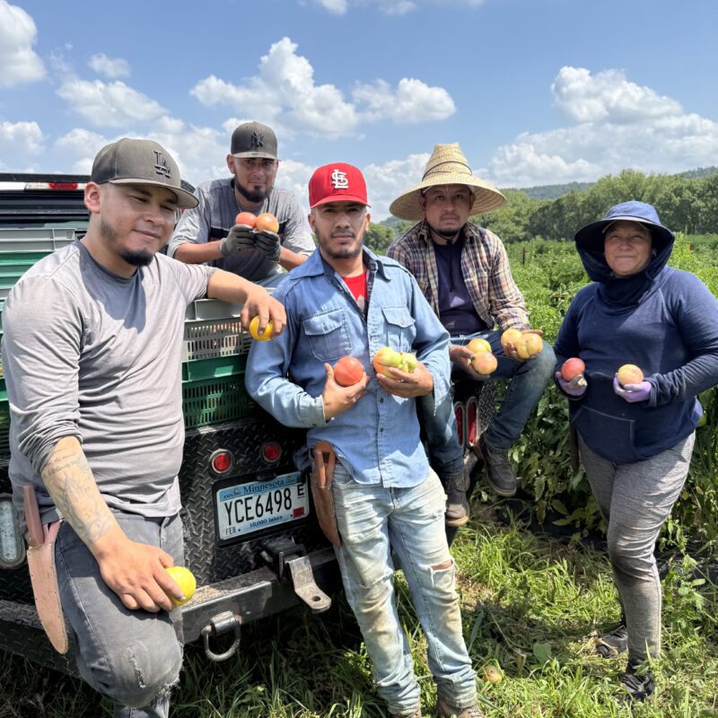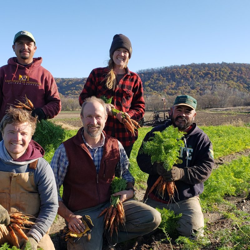 Featherstone Farm is a 225-acre, certified organic farm located along the Root River in the bluff country of Rushford, Minnesota. The farm grows more than 95 varieties of fresh market fruits and vegetables for distribution to local co-ops, restaurants, grocers, wholesalers, and Community Supported Agriculture (CSA) members throughout the Upper Midwest. Featherstone Farm is dedicated to building a truly sustainable agriculture system, both environmentally and socially, with features like geothermal heating and cooling in their packing shed and a solar array that supplies about 60% of the farm’s energy. The farm is equally committed to creating a fair, transparent, and respectful workplace by ensuring humane wages and safe working conditions for their employees as a Fair Food certified farm.