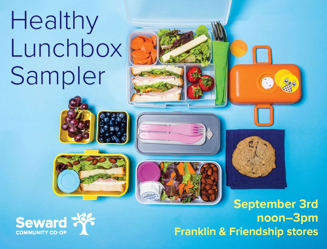 Go beyond PB & J and kick the school year off right. Stop in on Saturday, September 3 for some new ideas, recipes, and grab n‘ go items from our deli for easy, nutritious lunches and snacks for busy kids and families. Pick up some unique and sturdy insulated lunch containers, bento boxes, and even reusable sandwich wraps made from beeswax!