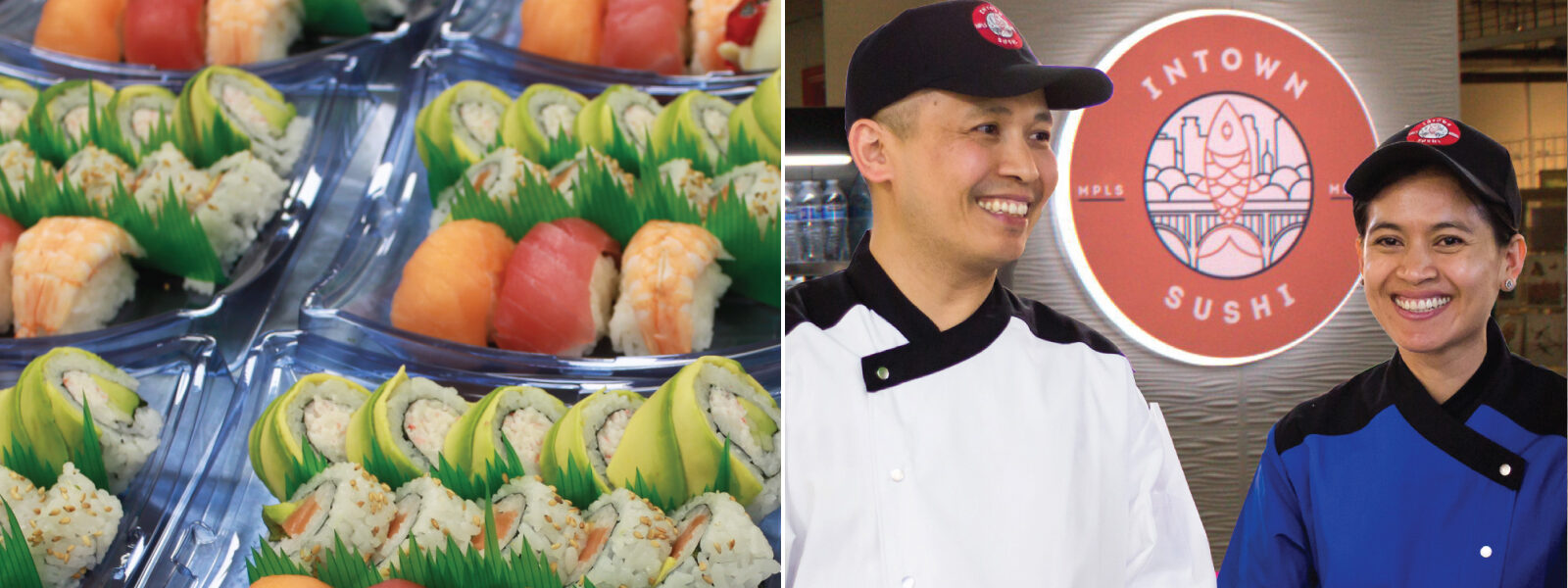 Than Zaw, a Burmese native, spent decades of his life as a chef. From his time in Malaysia to his move to the United States, Zaw’s years of experience led him to bring his sushi expertise into local markets, and even to the Super Bowl LII at U.S. Bank Stadium. His business, Intown Sushi, now supplies authentic, high-quality sushi in convenient packaging to over 40 locations throughout the Twin Cities. Their traditionally trained chefs prepare fresh sushi daily, with their rolls, bowls, nigiri, and more in the Grab & Go Deli sections of the Franklin and Friendship stores.