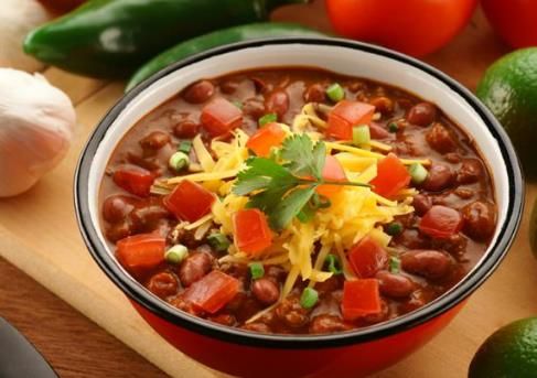 - Chicago-style chili: ground beef, kidney beans, tomatoes, onions and beer–perfect for topping a hot dog
