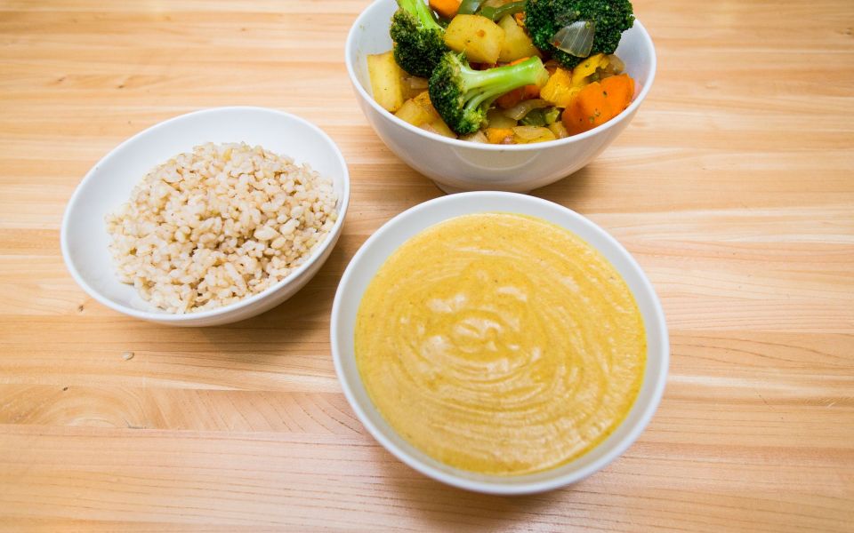 Sauté any veggies you have on hand (peppers, onions, carrots, celery, leeks, etc.) until tender. Add the banana curry stir fry sauce and heat through evenly.
