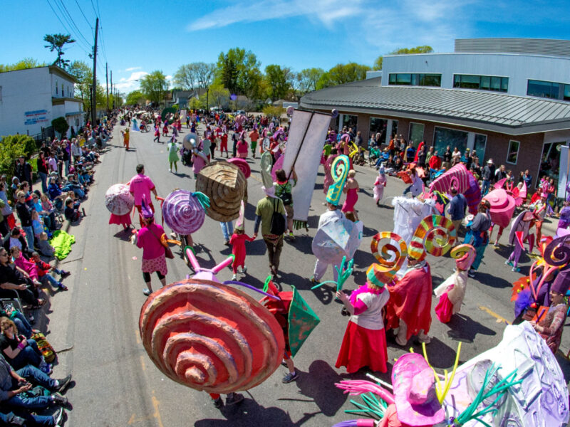 While the original parade consisted of just over 50 people, a few puppets, several banners, speeches, and small-scale performances, it has morphed into a wholly unique South Minneapolis holiday. Tens of thousands of people attend each year, and it’s carried out by a swath of multicultural network of community members and groups who help organize, build puppets, create fire-spewing metal sculptures, and more, all in service to welcoming spring, coming together, and celebrating togetherness.
