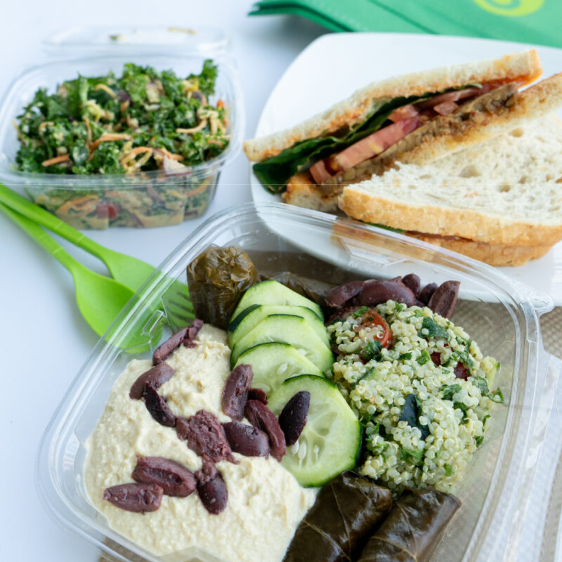 Pick up portable parade-ready bites from the Deli, including our earthy, sweet, and spicy Gingery Golden Beet Salad, savory Tempeh, Lettuce & Tomato sandwich, or a taste of the Mediterranean with a Dolmadas Bowl.