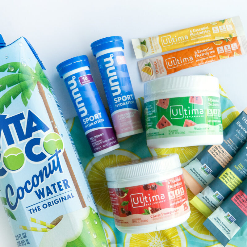 Stay energized with electrolytes from True Grace, Ultima, or Nuun tabs and a variety of hydrating beverages.