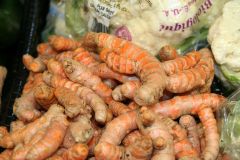 We love Kolo Kai ginger and turmeric. It’s not local, but it is fresh. Kolo Kai is an organic farm in Kauai. The farmers, Ben and Colette, harvest the roots to order and then ship it priority mail, so what ends up in our store is never more than a week old. This year, we couldn’t carry it during the winter, because it was so cold that the packages froze on the way to our store. We’re safely past polar vortices, so we’ve resumed ordering it, and wow, the turmeric is the best I’ve ever seen.