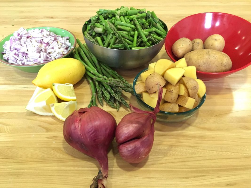 2. In medium saucepan, heat oil over medium heat. Add shallots and cook, stirring often, until beginning to brown, 8 to 10 minutes. Add potatoes, cut-up asparagus and 4 cups water. Cover and bring to a boil over high heat. Add bouillon and 1 teaspoon salt. Reduce heat and simmer, partially covered, until potatoes are tender, about 10 minutes.