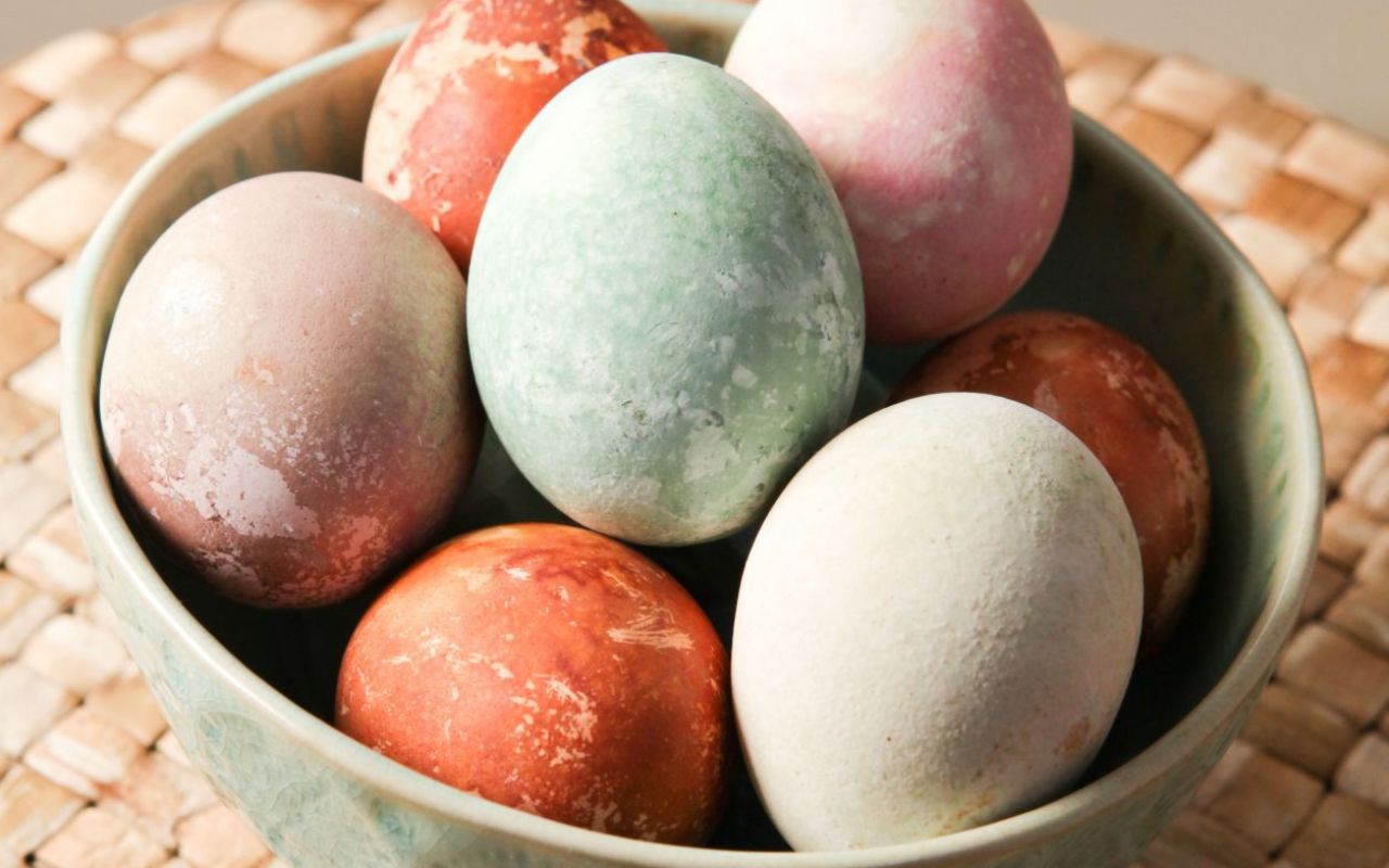 - Beets (pink; more of a brownish red the longer you leave eggs in this dye)